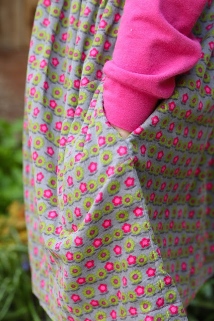 Maggie loves the soft fabric, the pink flowers, and, of course, THE POCKETS. "These are the best pockets in the world!" she announced on trying this dress on. I'll take that as a win!